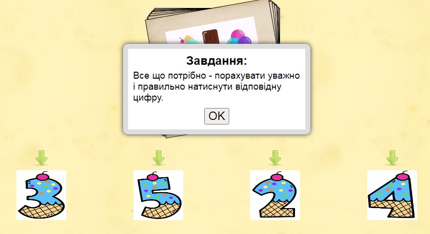 Інтерактивна вправа "Порахуй морозиво" (рахунок в межах "5")